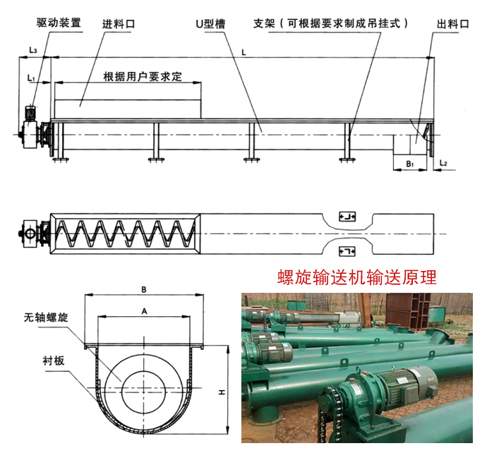 绿巨人黄色免费网站一般由輸送機本體、進出料口及驅動裝置三大部分組成;绿巨人黄色免费网站的螺旋葉片有實體螺旋麵、帶式螺旋麵和葉片螺旋麵三種形式,其中,葉片式螺旋麵應用相對較少,主要用於輸送粘度較大和可壓縮性物料,這種螺懸麵型,在完成輸送作業過程中,同時具有並完成對物料的攪拌、混合等功能。