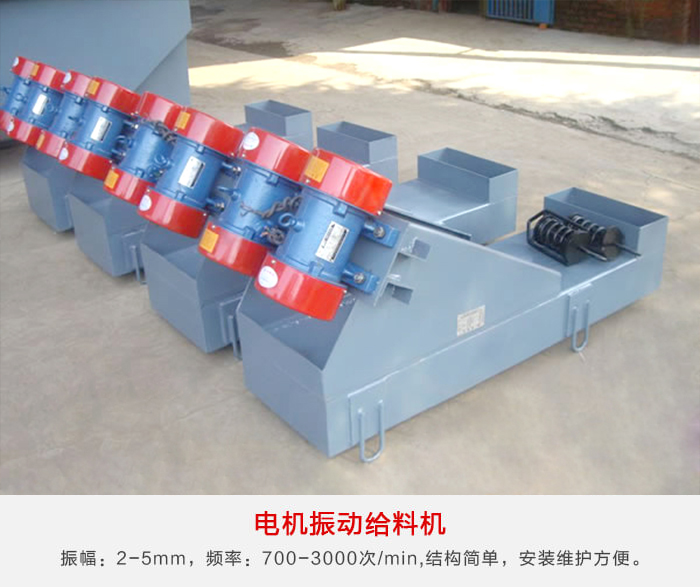 電機振動給料機是以振動電機作為振源的給料設備,振動頻率略遜於電磁振動給料機,但振幅較大,給料量也較大,後期維護比較簡單,出現問題,直接更換振動電機就可以了!