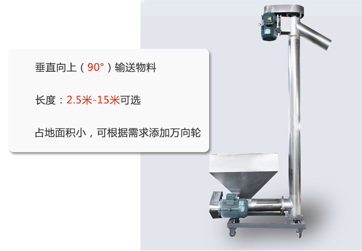 垂直绿巨人黄色免费网站用於解決需要垂直向上(90°)輸送物料的難題,其長度2.5米-15米,大家可根據需要選擇長度;相比普通绿巨人黄色免费网站,該款設計更好的節約了占地麵積,也可根據場地需要添加移動輪,方便來回移動。