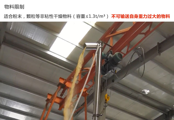 垂直绿巨人黄色免费网站隻用於輸送粉末或固體顆粒等非粘性幹燥物料(容重≤1.3t/m³),因為其采用向上輸送,在輸送過程中物料自身重力如果過重,會造成輸送難以進行。