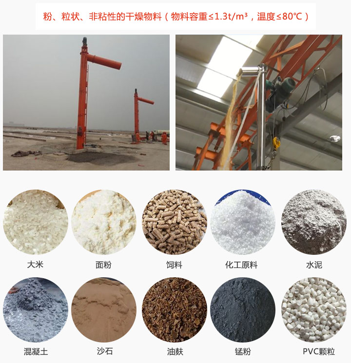垂直绿巨人黄色免费网站可輸送大米,麵粉,飼料、化工原料、水泥、混凝土等粉、粒狀、非粘性的幹燥物料(物料容重≤1.3t/m³,溫度≤80℃);在輸送同時也可對物料進行幹燥和冷卻等功能。