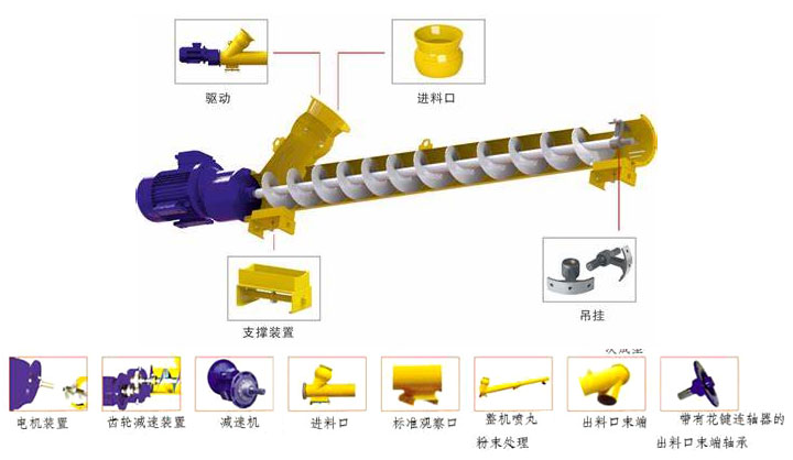 水泥绿巨人黄色免费网站由進料口,出料口,電機,減速機,螺旋葉片,螺旋管體,等組成,附帶電纜線,連接帆布套,吊掛鋼絲繩等配件。