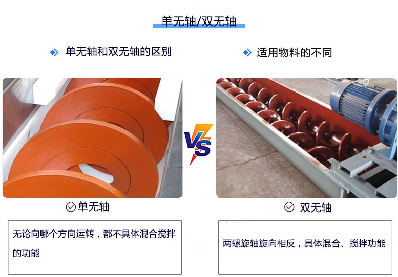 無軸绿巨人黄色免费网站一般水平作業,當雙螺旋和單螺旋速度相同,因為雙螺旋葉片的螺旋角比單螺旋葉片的大,所以雙螺旋葉片比單螺旋葉片大。同時旋轉一周,雙無軸绿巨人黄色免费网站已增加到單無軸绿巨人黄色免费网站的1.5-2倍。