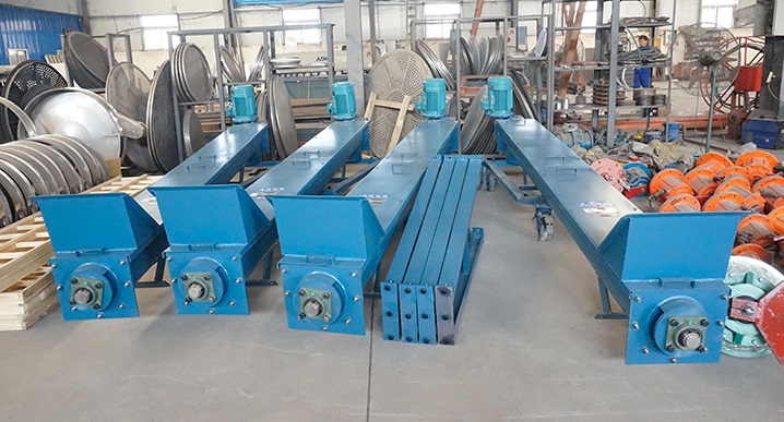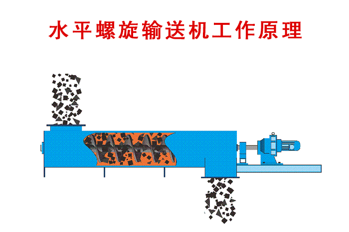 當物料加入固定料槽時,由於物料自重和機槽之間的摩擦,會堆積在機槽上,物料在旋轉的螺旋葉片的推動下向前運動,從而達到水平方向上的輸送的。