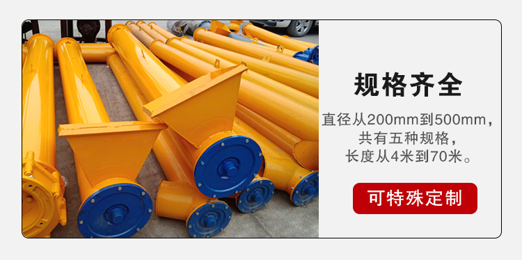 管型绿巨人黄色免费网站是利用螺旋旋轉而推移物料的連續輸送設備,適用輸送麵粉、穀類、水泥、化肥、灰渣、沙子、石子、煤粉、小塊煤等物料。由於機體內有效流通麵積小,绿巨人黄色免费网站不宜輸磅易變質的、粘性太大、易結塊的物料。