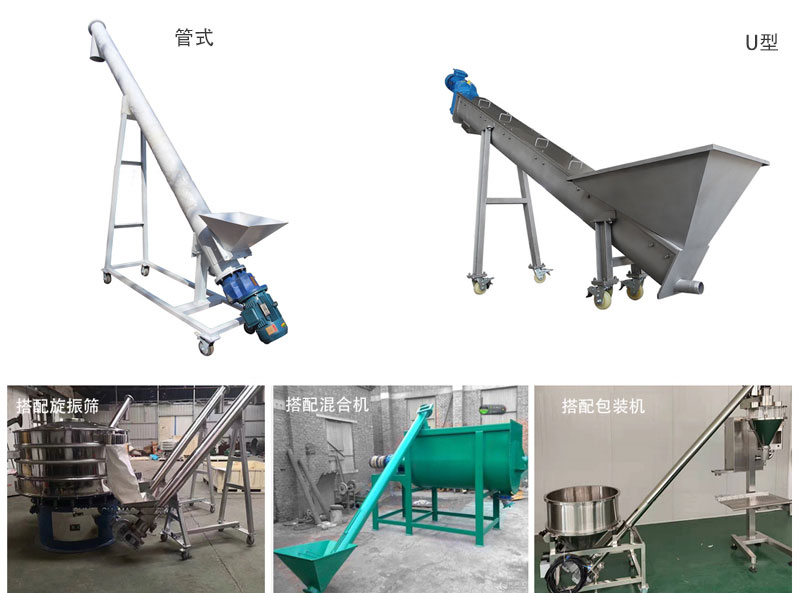 可根據您的要求定製,如法蘭直徑尺寸、進出料口距離、安裝傾角、形狀(U型、管狀、無軸)、進料口尺寸等,也可定製與篩網、混合機、料倉配套使用。