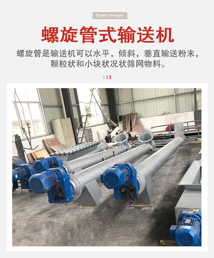螺旋管是輸送機可以水平,傾斜,垂直輸送粉末,顆粒狀和小塊狀況狀篩網物料,廣泛用於糧食,建材,化工,機械製造,交通運輸業等行業。