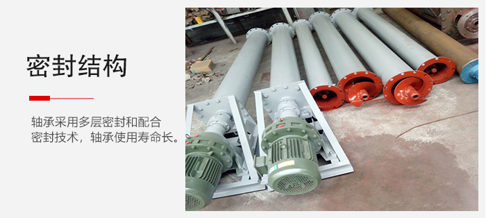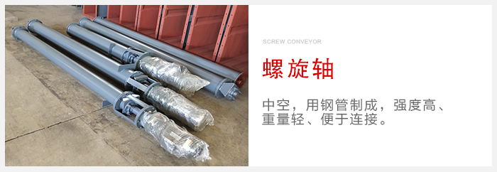 螺旋軸:中空,用鋼管製成,強度高、重量輕、便於連接。在軸與軸的連接處和安裝軸承處使用一小段實心軸。在連接處將實心軸伸入空心軸內用高強度的螺栓按相互垂直方向對穿空心軸與實心軸來固定連接螺旋軸。