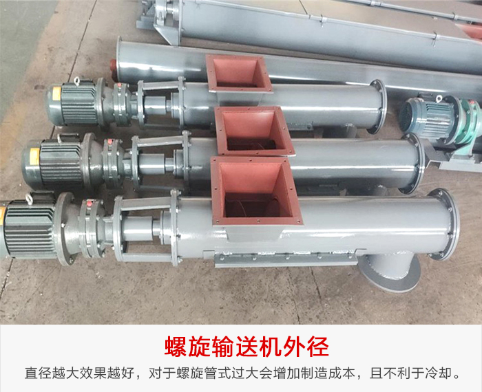 直徑越大效果越好,但是對於開式管式輸送機,螺旋外徑過大會增加製造成本,且不利於冷卻。此外,外徑值沒有必要一定取500的整數倍。