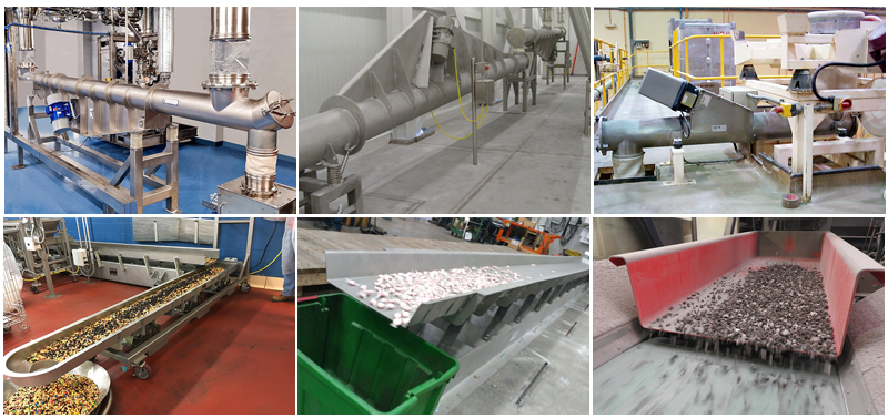 載體:可選擇U型槽和管狀的,也可以製成敞開式或密封式,以滿足不同的工藝流程。料槽的進料和出料也可根據需要製成單點/多點進料,單點/多點出料等多種型式。